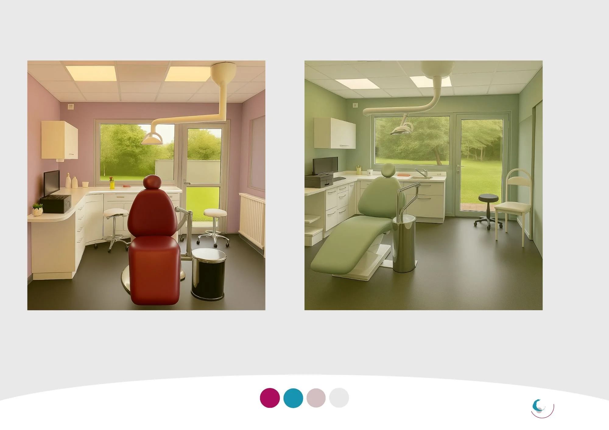 Selon ce que vous souhaitez offrir à vos patients.es, au-delà du soin, vous pourrez choisir une couleur par espace, la salle d’attente, la salle de soin, la salle d’examen …